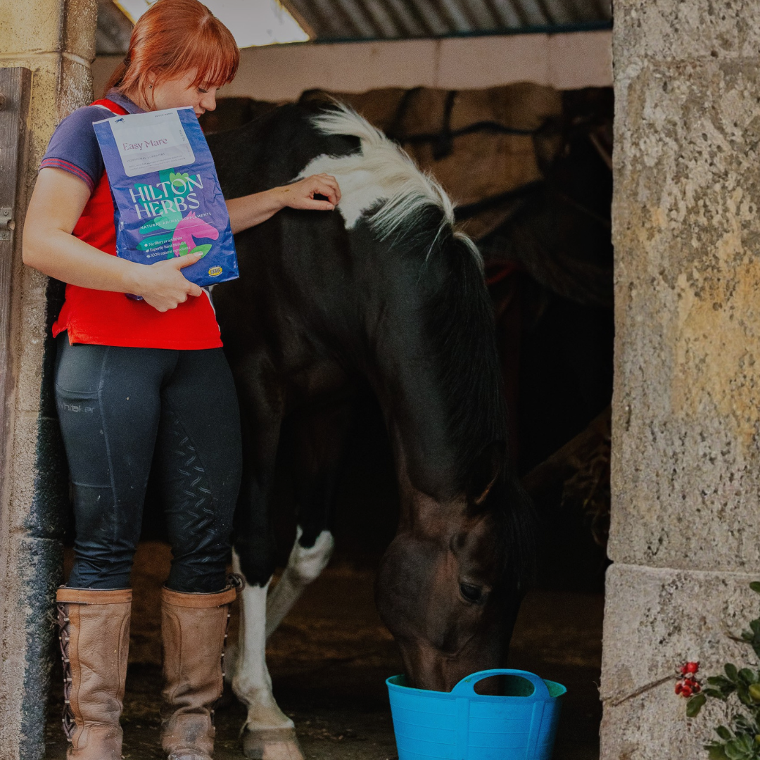 Easy Mare is a natural, herbal supplement formulated to help maintain a balanced hormonal system and promote a calm, steady outlook in mares, ponies, and donkeys. It is particularly beneficial for young or sensitive mares who may experience discomfort or behavioural changes during their seasons, as well as for geldings displaying ‘riggy’ or unwanted stallion-like behaviour.