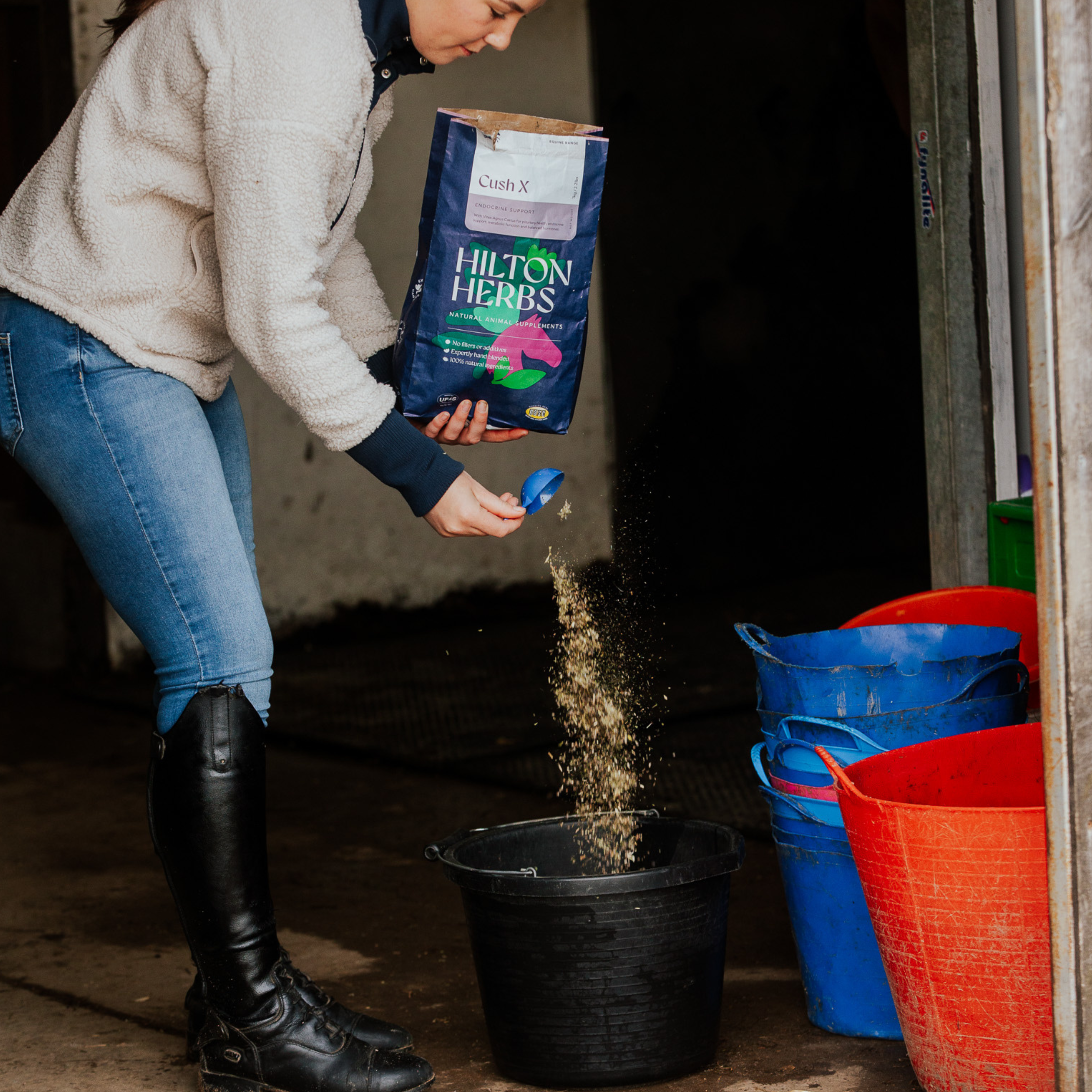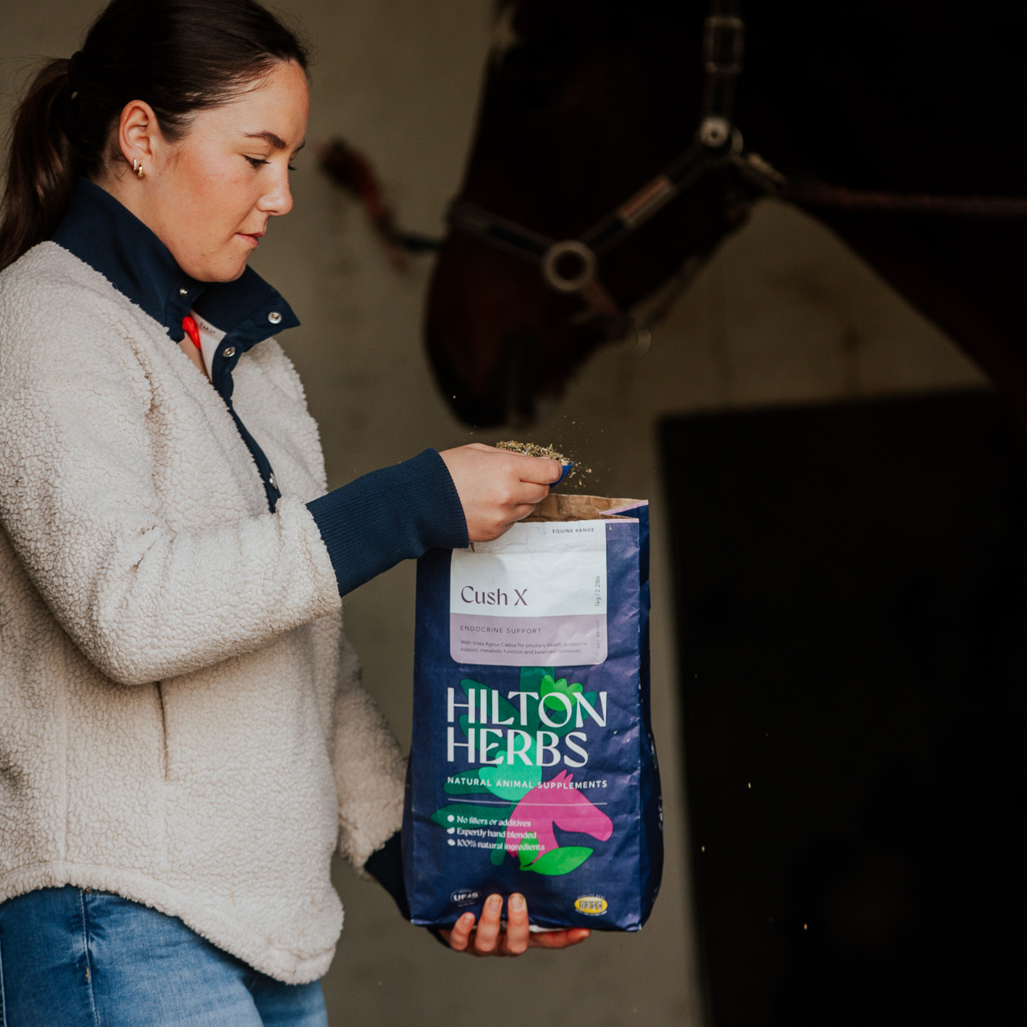 Cush X est un complément naturel soigneusement élaboré, spécialement conçu pour répondre aux besoins spécifiques des chevaux, poneys et ânes.