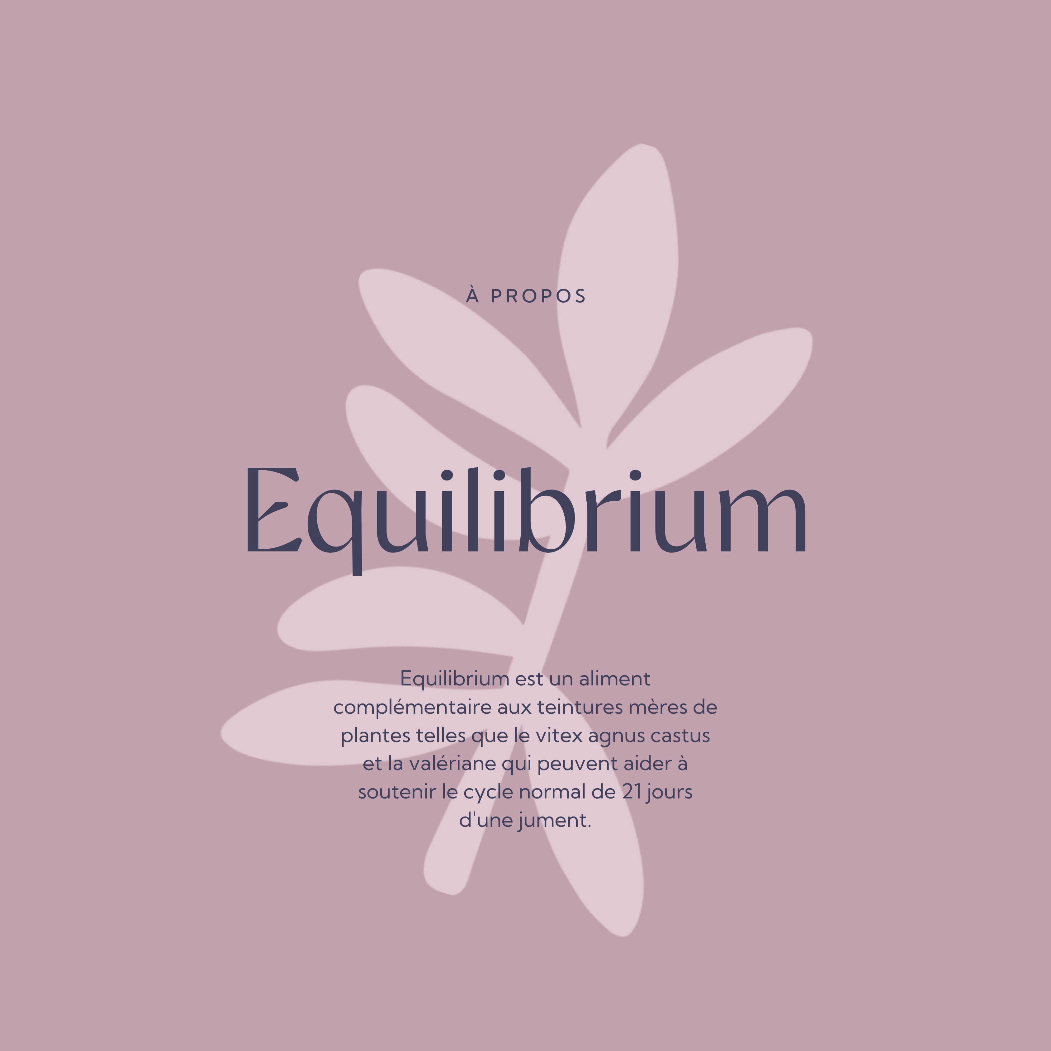 Equilibrum Liquide est un complément naturel conçu pour les chevaux, les poneys et les ânes afin d'aider à maintenir et à soutenir un système hormonal équilibré et de favoriser un tempérament calme et stable. Il est particulièrement utile pour les jeunes juments qui souffrent d'inconfort pendant leurs saisons et pour gérer les comportements 'rigides' ou indésirables chez les hongres. La formule comprend des herbes telles que le Vitex agnus castus et la valériane, connues pour leur capacité à soutenir le cycle hormonal normal de 21 jours de la jument.