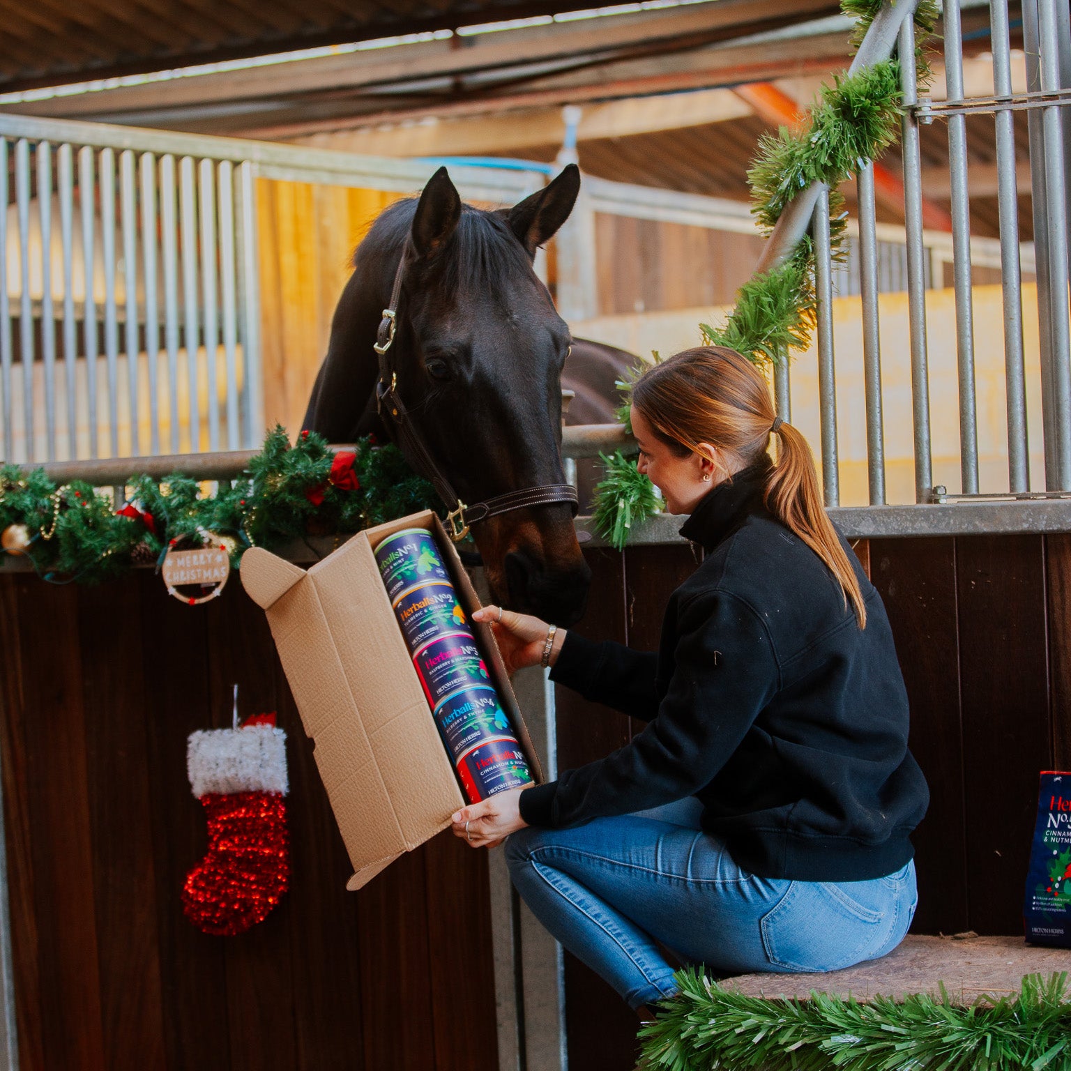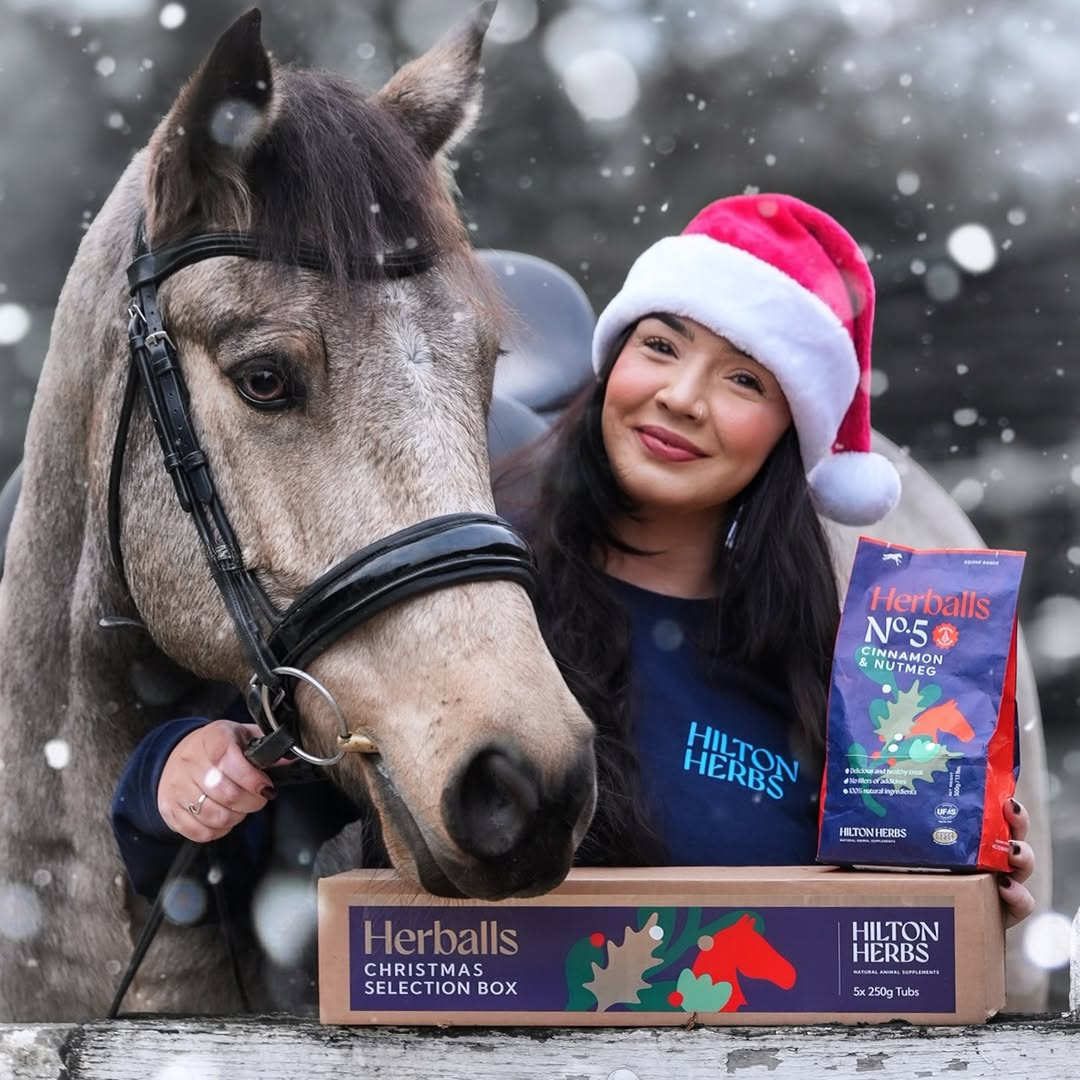 Spoil your horse this Christmas with our brand new Hilton Herballs Christmas Selection Box. The perfect present, our selection box contains five 250g tubs of Hilton Herballs, one of each of our delicious flavours, packaged beautifully in a recyclable gift box.